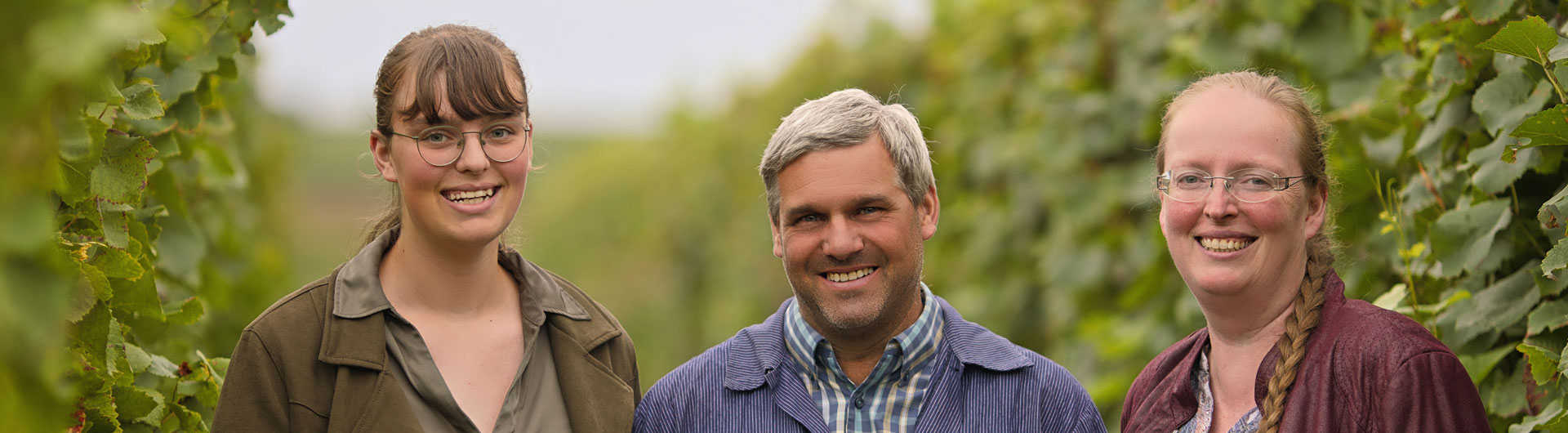 Christine ist für Verkauf, die Organisation und den Kundenkontakt zuständig. Tochter Karin hilft heute schon mit wo es geht. Wir alle lieben den Wein und das was wir tun!